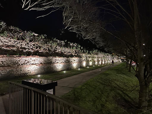 To illuminate the various sections of the Roman Wall, Chromatica have manufactured and installed UP200 LED uplighter luminaires. Luminaires are mounted in fabricated aluminium ground tubes and operate at 30V DC. Power is supplied from PSU gear trays located within feeder pillars and Gifas boxes along the route of the wall.