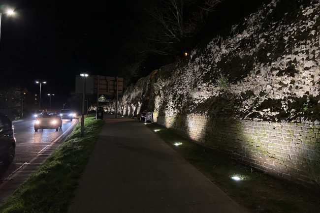 As part of an initiative to illuminate many of Colchester’s historical structures, Chromatica illuminated sections of the Roman Wall along the extent of Balkerne Hill. The scheme is split by the Balkerne Gate structure and the Hole in the Wall Public House.