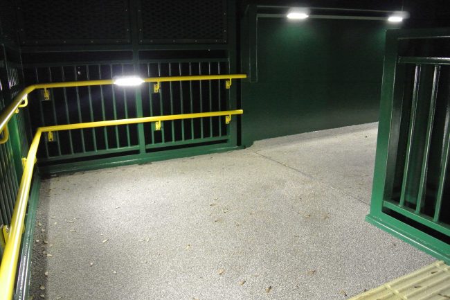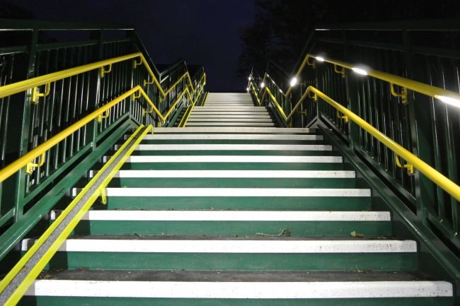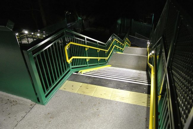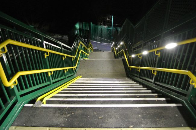 To illuminate the bridge staircases and main span, Chromatica RL648 LED handrail luminaries are utilised in one side of the dual height handrail system on both staircases, and across one single side of the main span, located in a SHS positioned just below the main span top chord.