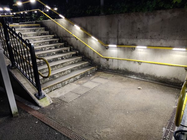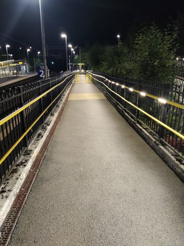 As part of an access improvement scheme, replacement handrails have been installed on the access ramps to the station platforms. As part of the refurbishment works the old lighting system was removed and replace with Chromatica RL648.ASY luminaires.