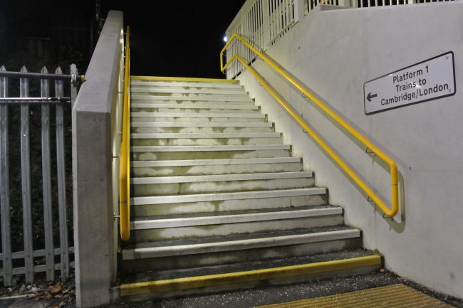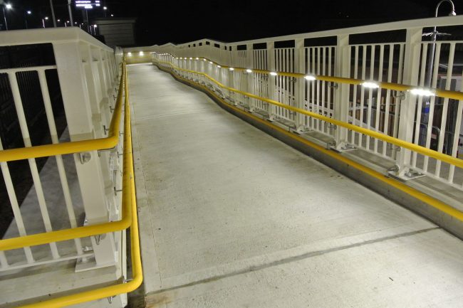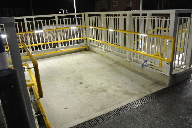 As part of a station redevelopment a new staircase and access ramp have been constructed to provide pedestrian access to the raised platform 1. Chromatica manufactured and installed LED lighting to illuminate the staircase and access ramp in a single sided lighting arrangement.