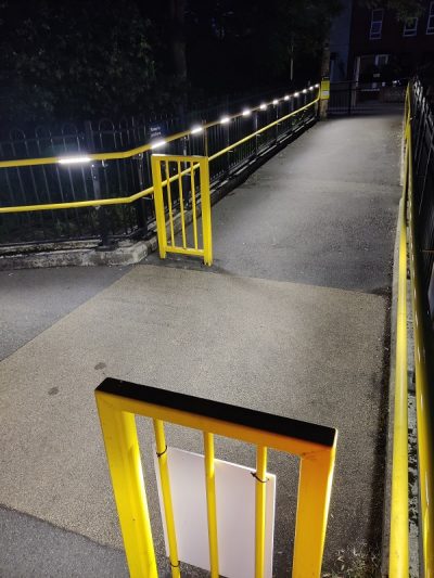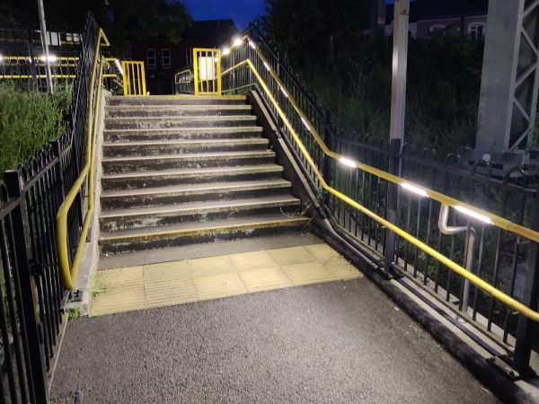As part of an access improvement scheme, replacement handrails have been installed on the access ramps to the station platforms. As part of the refurbishment works the old lighting system was removed and replace with Chromatica RL648.ASY luminaires.
