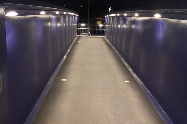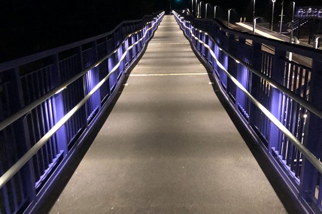 Chromatica manufactured and installed an LED lighting system within the handrails on all the staircases and access ramps, and within the SHS located just below the top chord of the main bridge span. In addition, two a central battery systems provide emergency lighting for a period of up to 3 hours in the event of a mains failure.