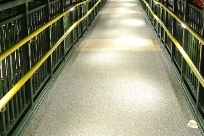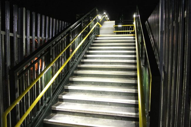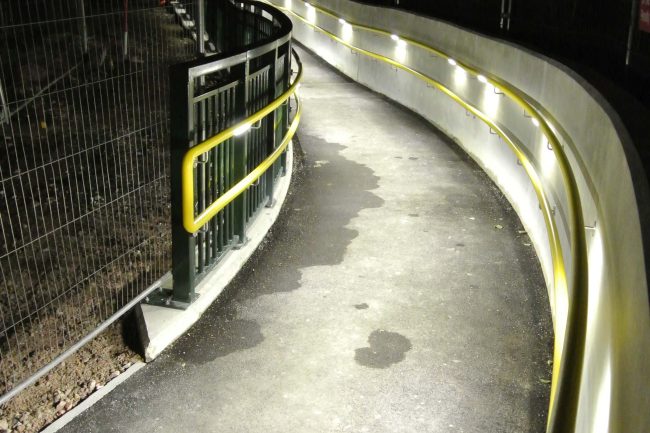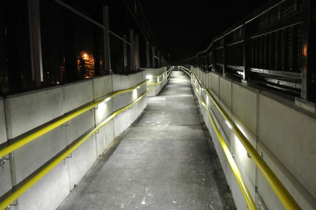 Chromatica RL348 & RL648 LED handrail luminaries are used to illuminate the north / south bridge staircases and access ramps, whilst luminaires are positioned in a SHS just below the top chord of the span parapet.